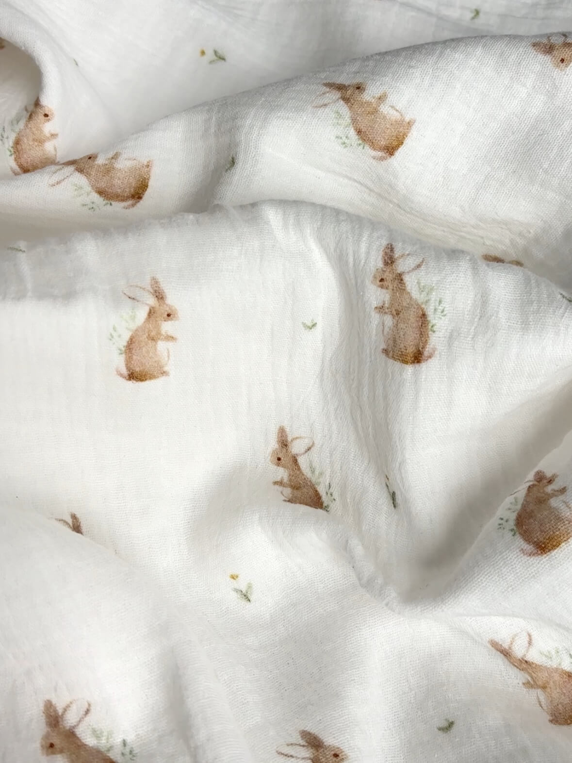 Egyik oldala nyuszis, a másik törtfehér duplagéz anyagból készült.