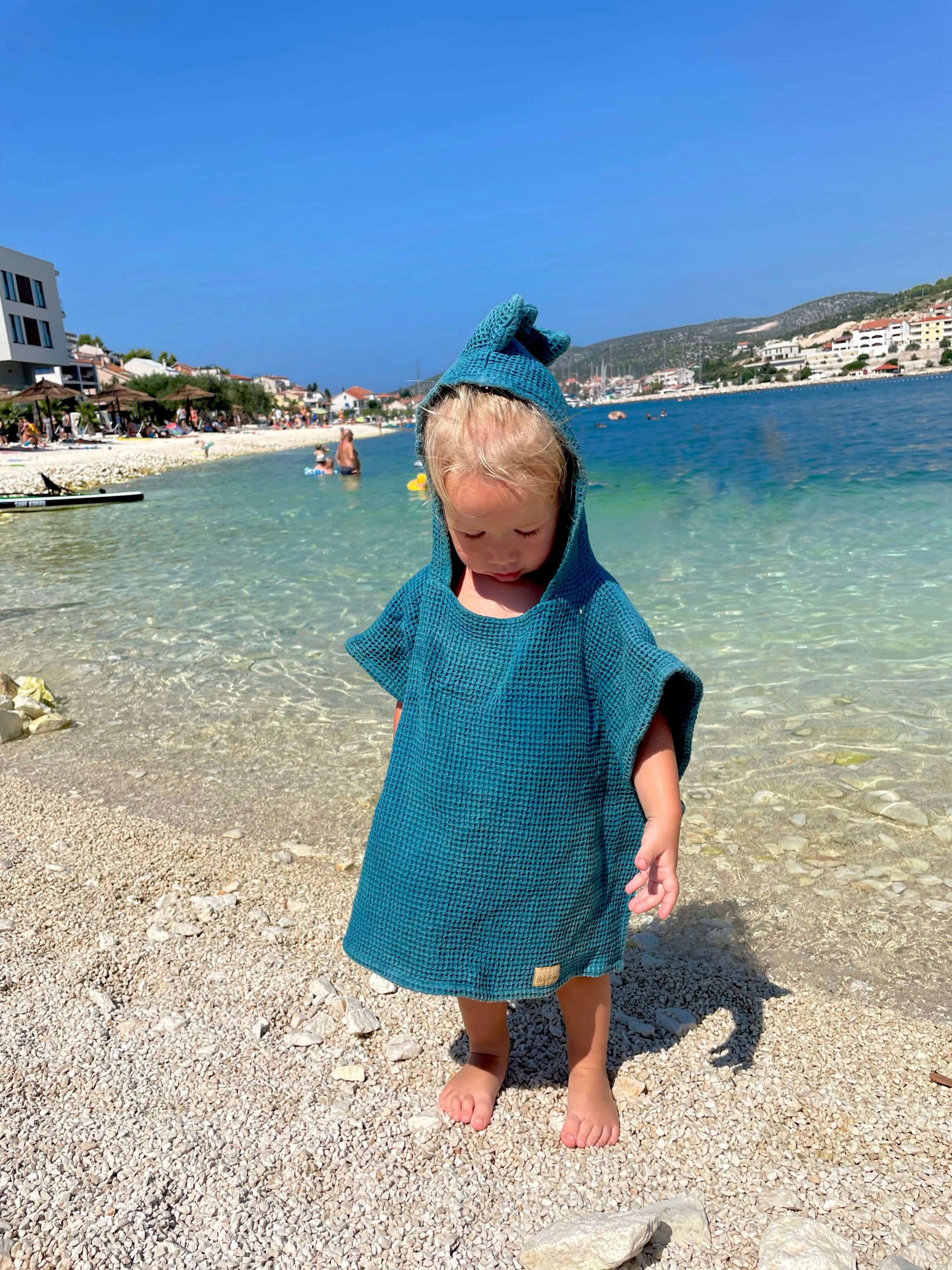Használd otthon, strandon, medencénél vagy a vízparton. A törölköző poncsó méretei könnyen illeszkednek minden gyermekre, így hosszú éveken át használható.